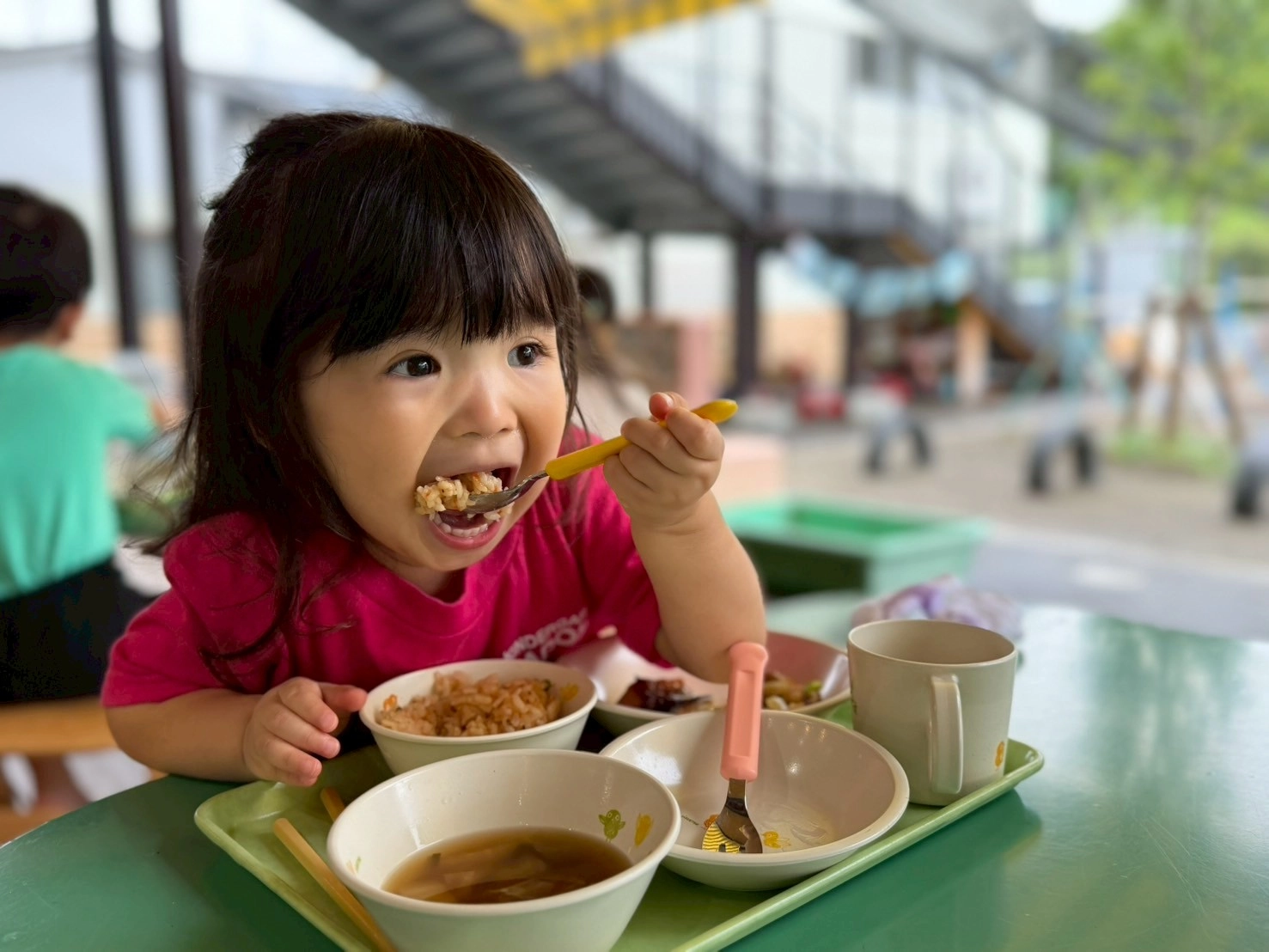 パドマでは、一番に子どもも職員も”楽しく美味しく食べること”を大切にし、自分から「食べてみよう!」とする気持ちを育てています。美味しく、温かい・冷たいを感じる給食、異年齢の関わり、子ども主体の保育、仏教保育、ランチルームの環境、は無理に食べさせるのではなく、子ども自身のやる気を引き出し伸ばします。